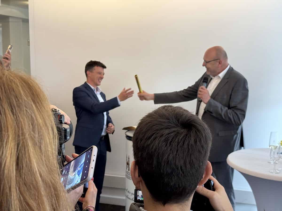 Raschke hat einen goldenen Staffelstab „Große Kreisstadt Meißen 2025″ mitgebracht und ihn seinem Nachfolger Markus Renner überreicht. „Nach 21 Jahren gebe ich ihn gern weiter“, so Raschke. Es wird schwer, in seine Fußstapfen zu treten. Er hat Schuhgröße 49. Dann trägt sich Raschke noch ins Goldene Buch der Stadt Meißen ein - und holt sich erstmal ein kleines Schwerter-Bier. Auf die neue Zeit.